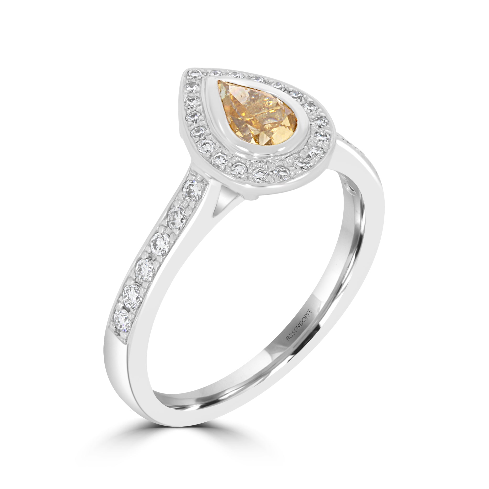 • Fancy Intense Yellow Pear & Diamond Halo Ring