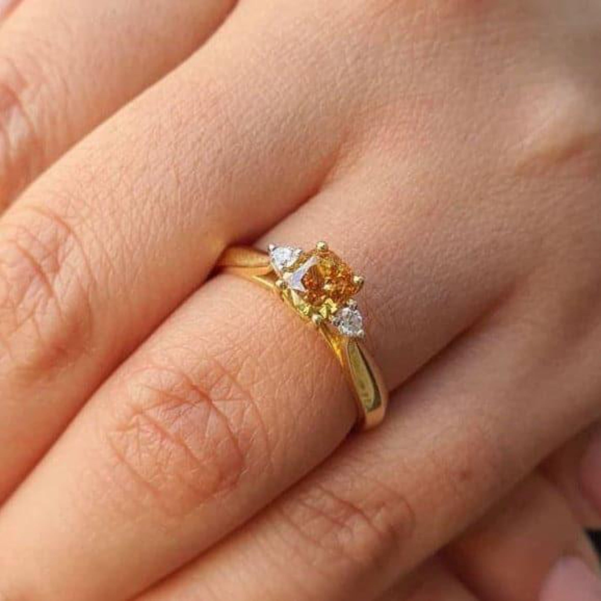 • Natural Yellow-Orange Cushion Trilogy Ring - Rosendorff Diamond Jewellers
