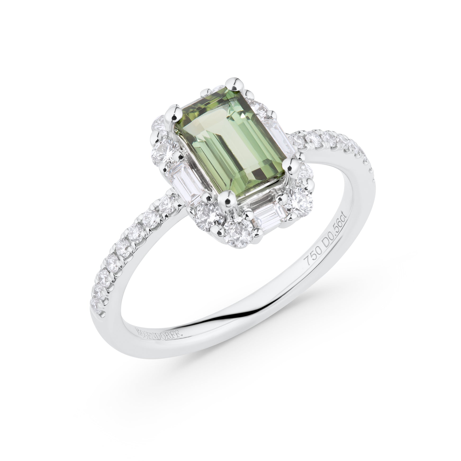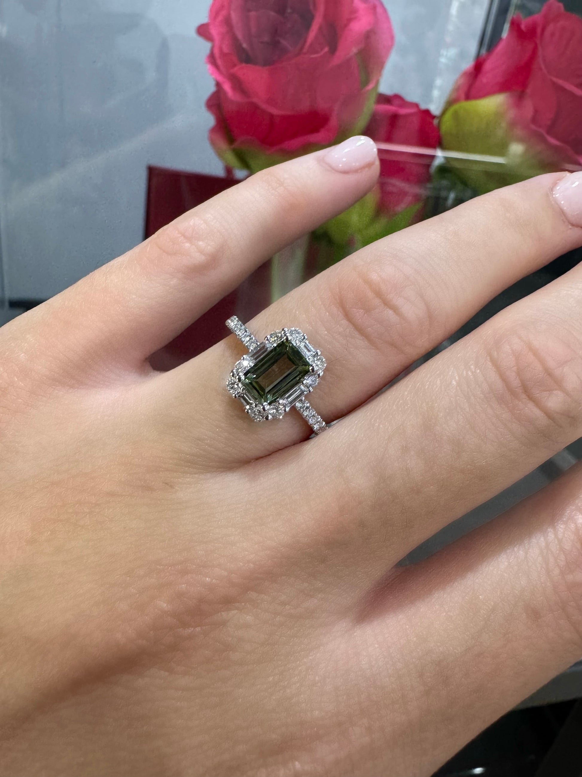 1.00ct Green Tourmaline & Diamond Halo Ring