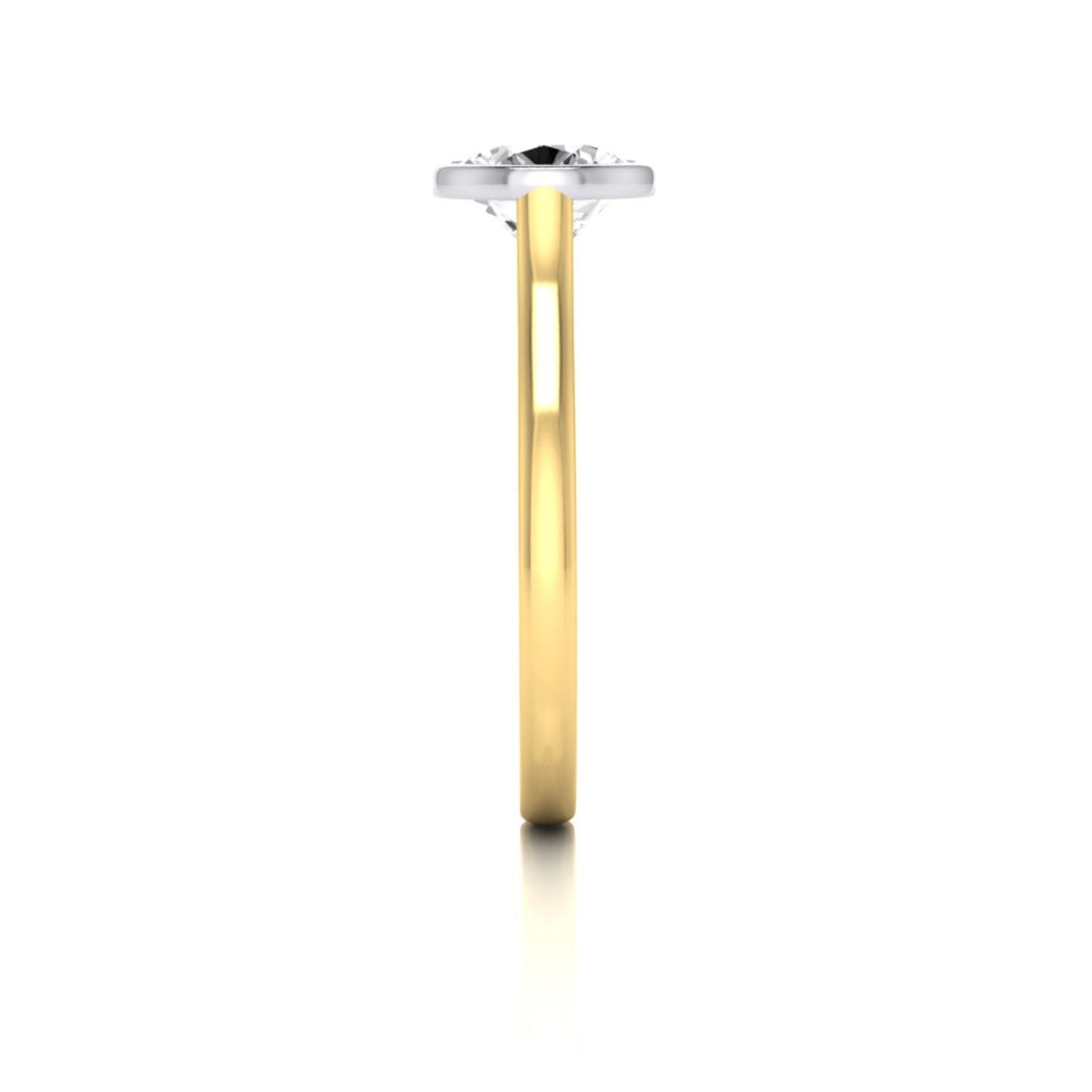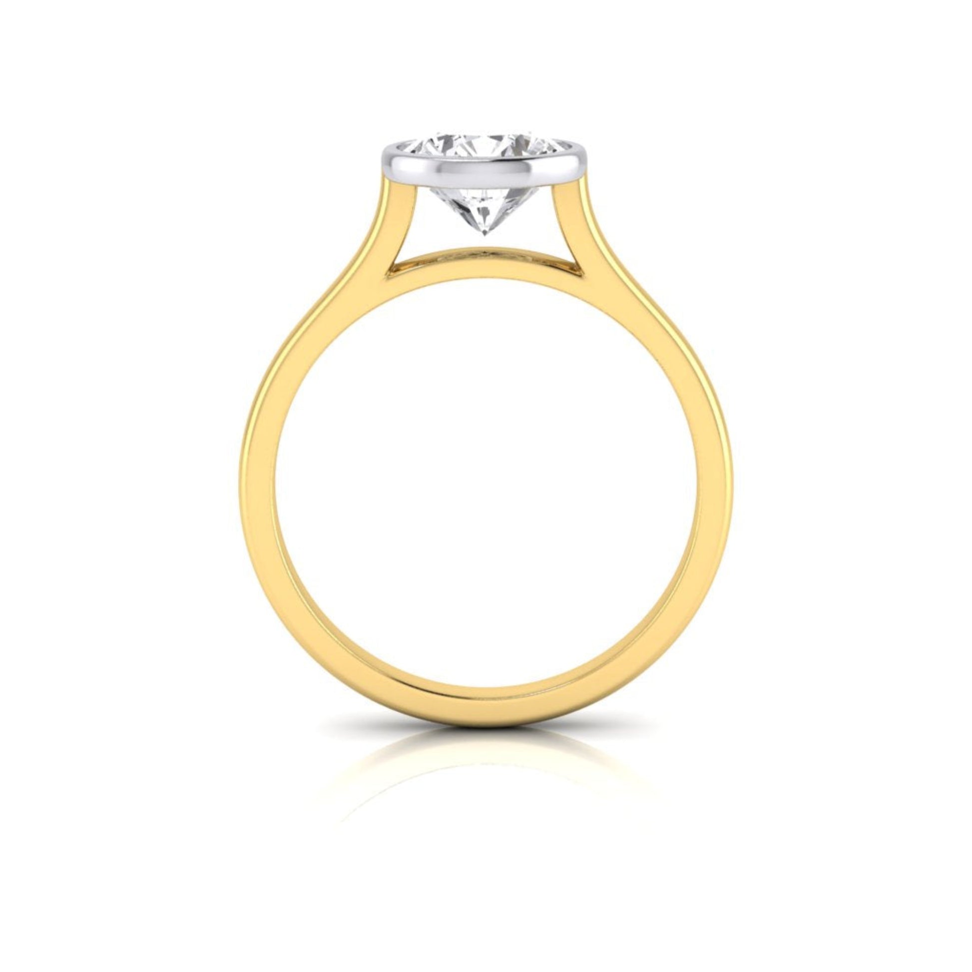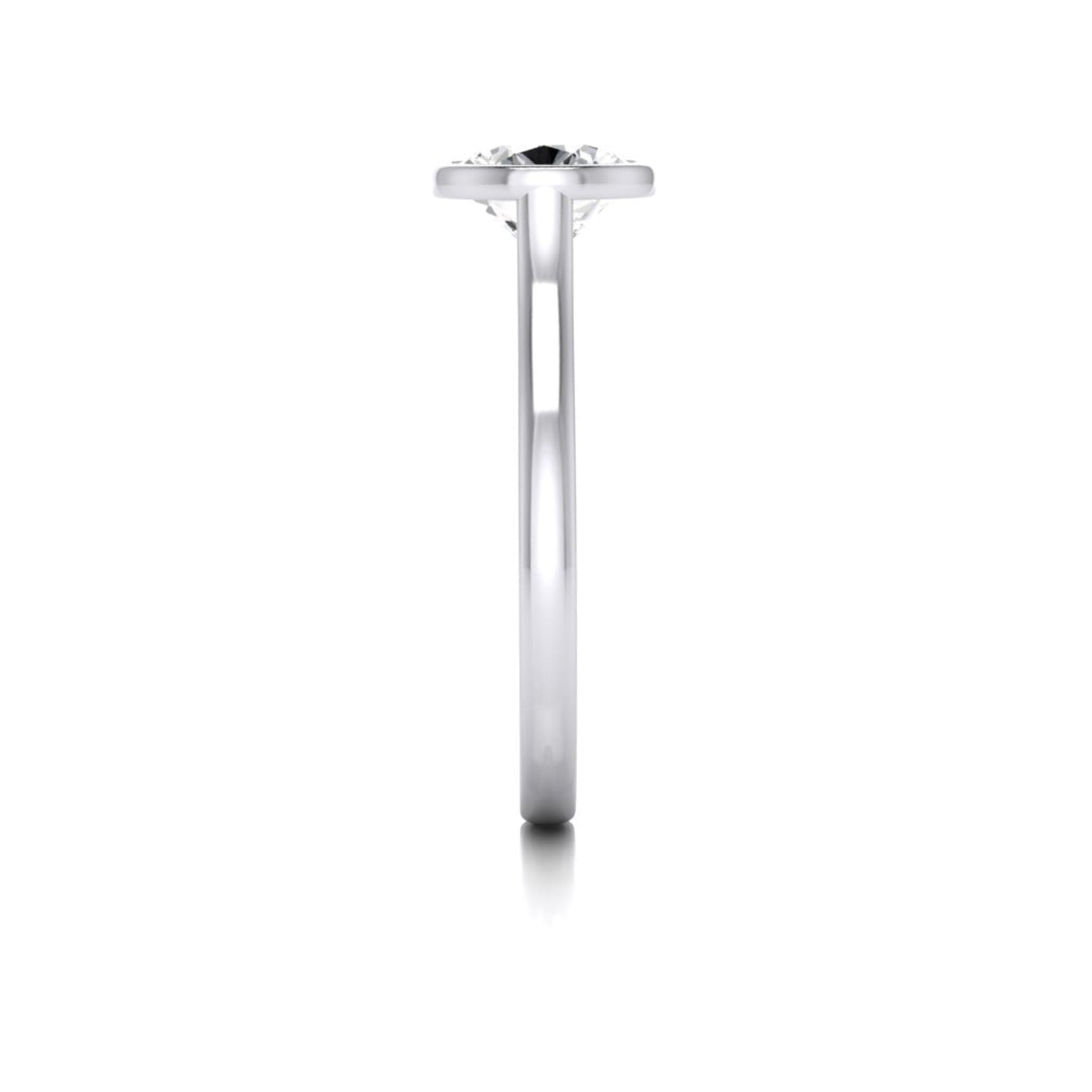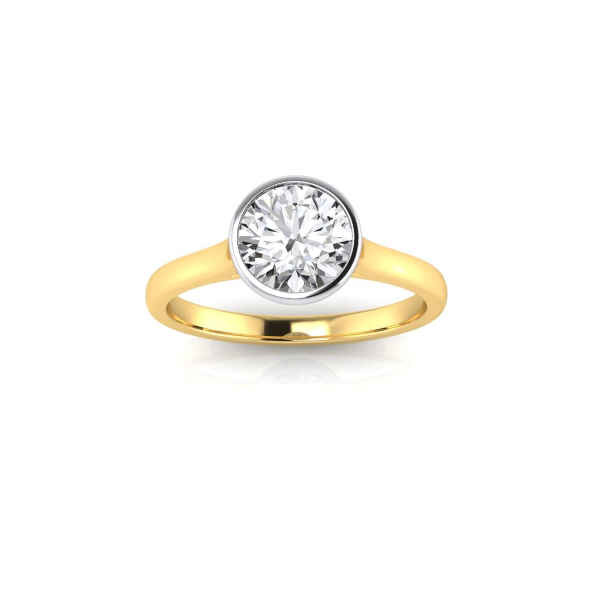 The Anne Bezel Solitaire Ring is a classic design featuring a round brilliant diamond encased in a sleek bezel setting.