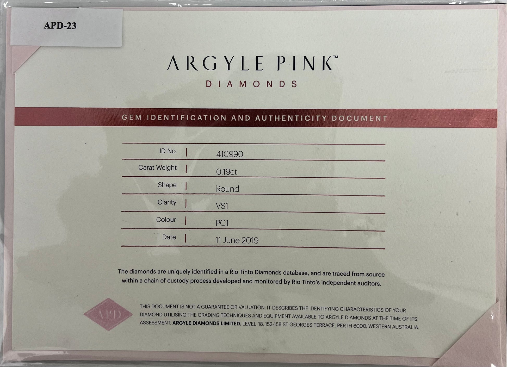 This Argyle Pink Diamond from WA has been cut and polished to showcase its beauty with certification of authenticity from the Argyle Pink Diamond, perfect for any piece of jewellery or as an investment.