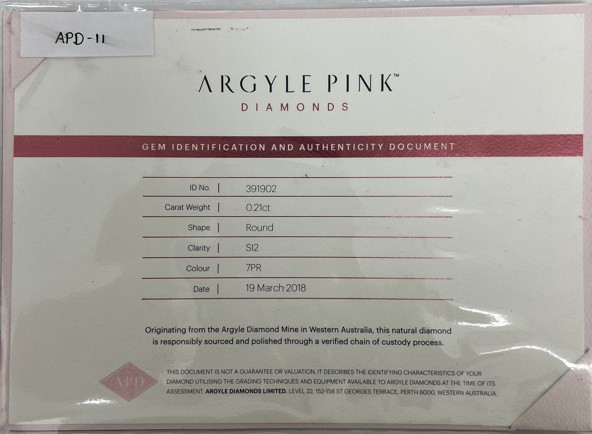 Argyle RB 0.21ct 7PR SI2 Certified Loose Pink Diamond From WA