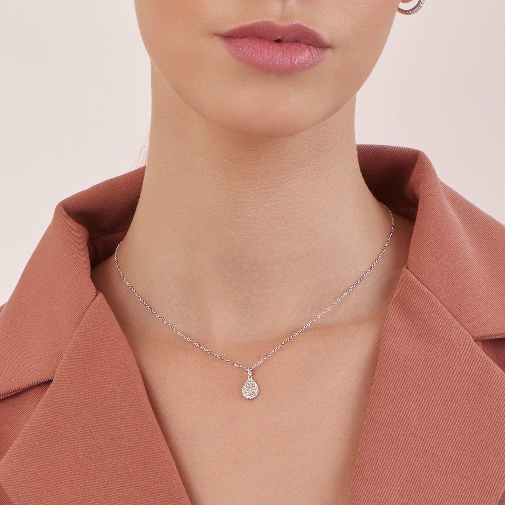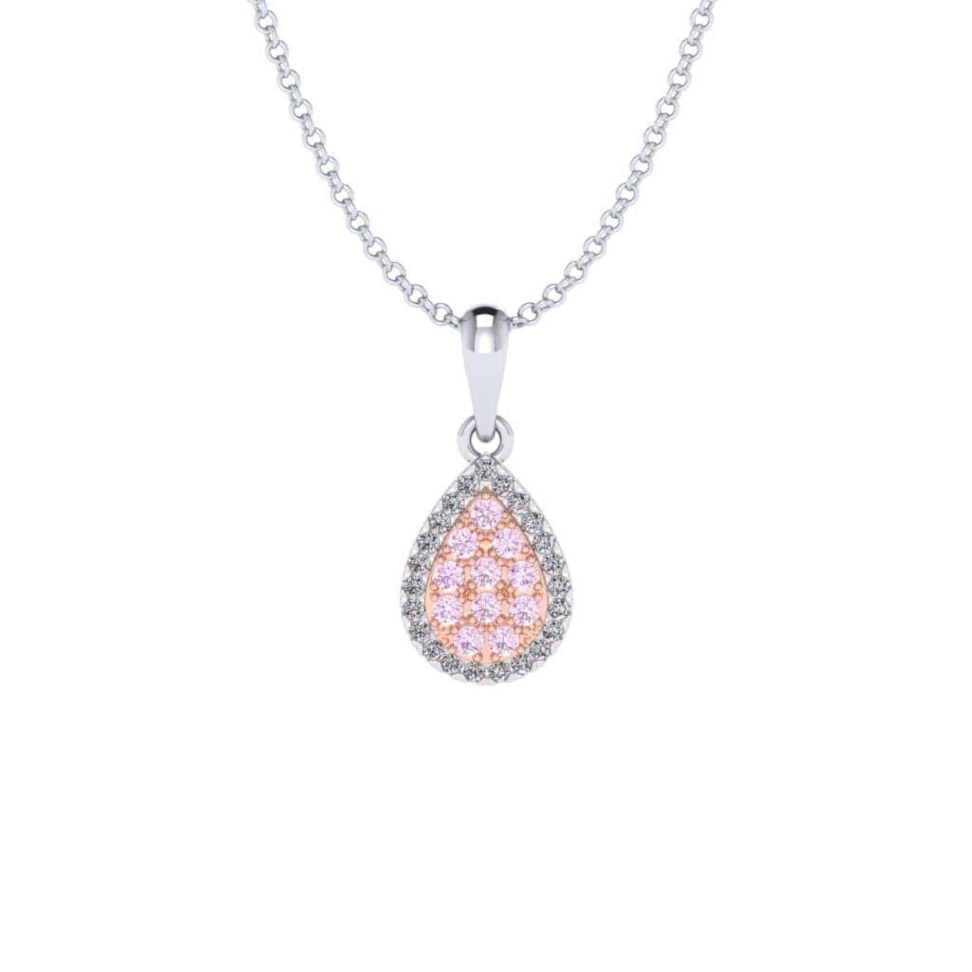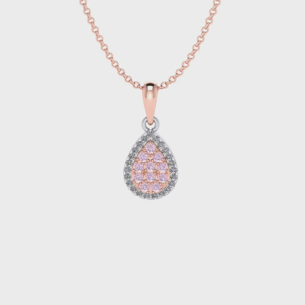 This elegant pear pendant feature Pink diamonds from the Argyle mine in Western Australia and are surrounded by a halo of sparkling white diamonds. Simple yet stunning, this pendant is perfect for any occasion.