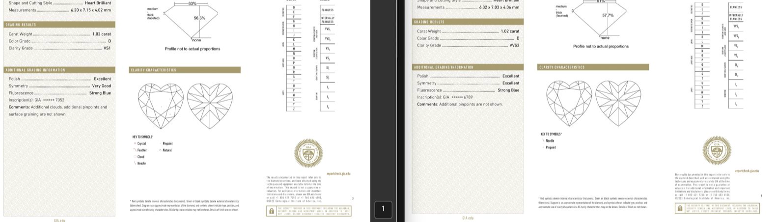Matched Pair 2=2.02ct Heart Natural Diamonds (GIA)