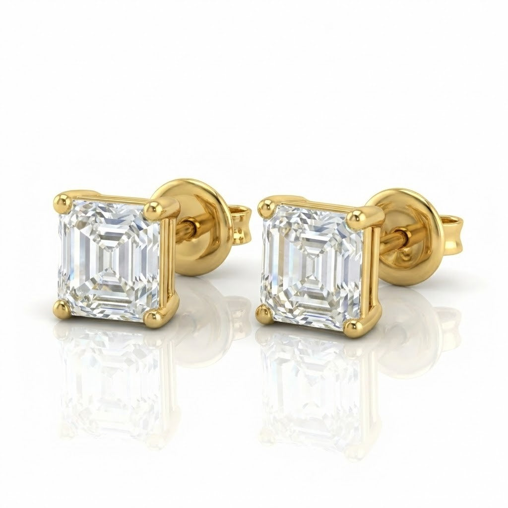 2=4.04ct Square Emerald Shape Natural Diamonds Certified GIA (and laser inscribed) set in your choice of 18k gold. The price is inclusive of 18k White, Yellow or Rose gold timeless 4 Claw Settings.  This perfectly matched pair of natural diamonds has been selected to work beautifully together in this finished piece.