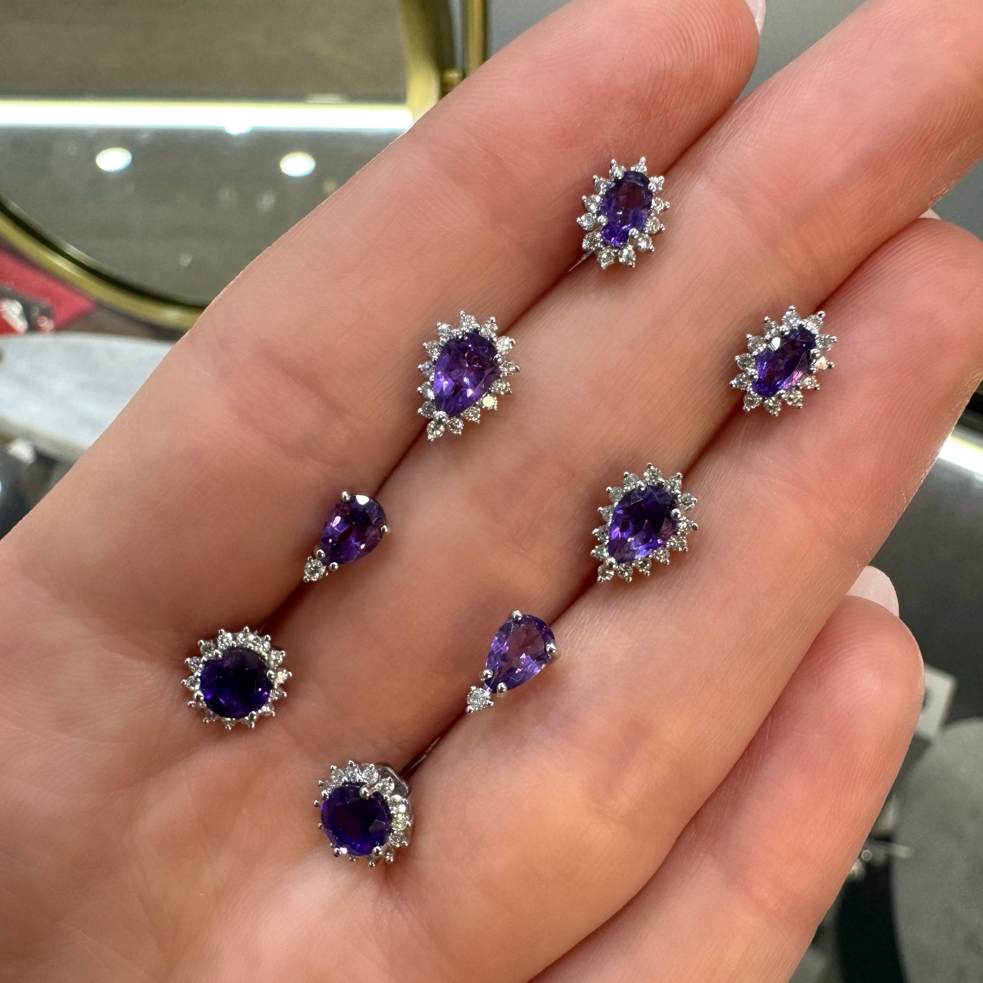 Amethyst and Halo Diamond Earrings