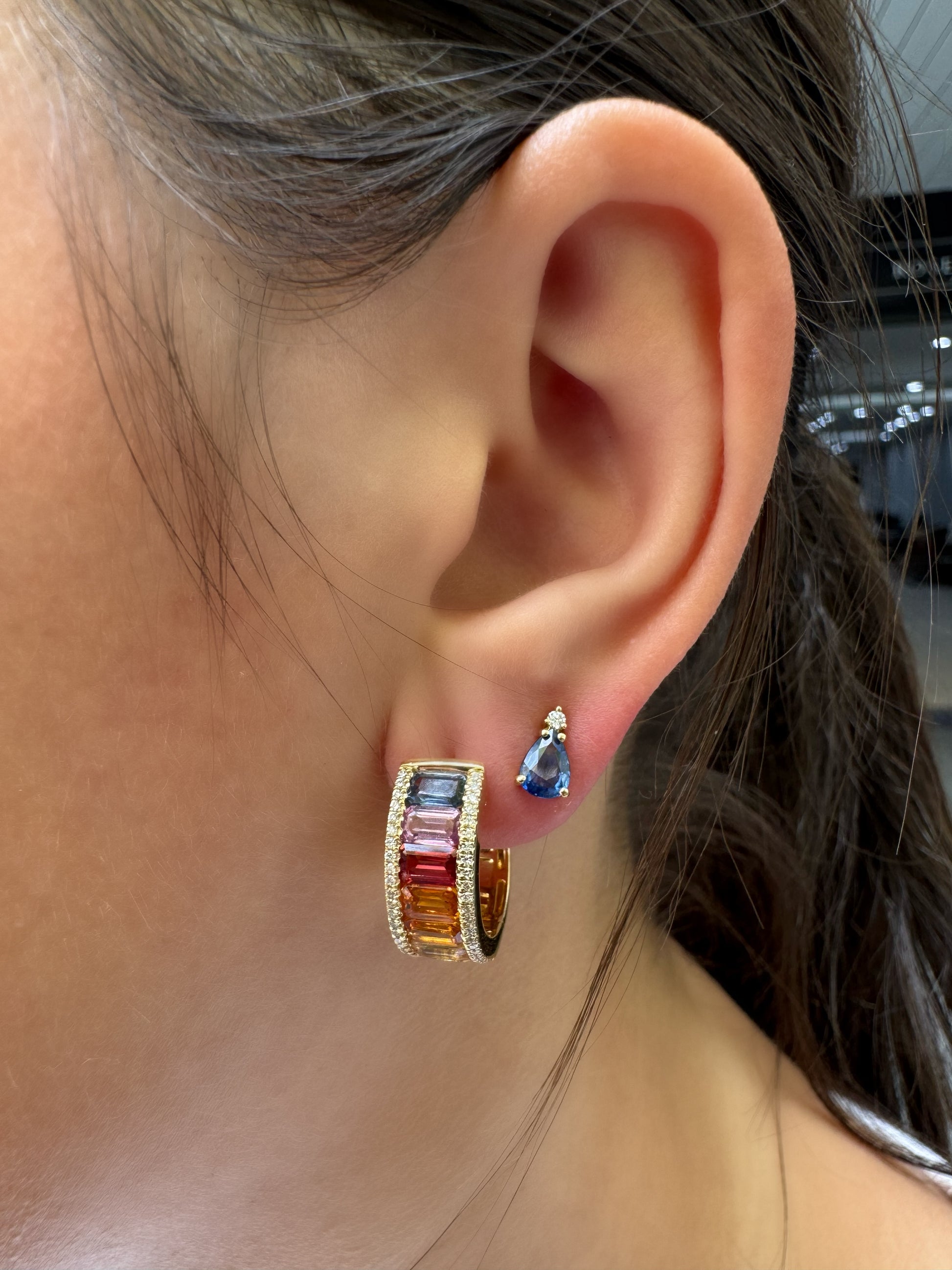 Rainbow Sapphire Emerald Cut Diamond Hoops