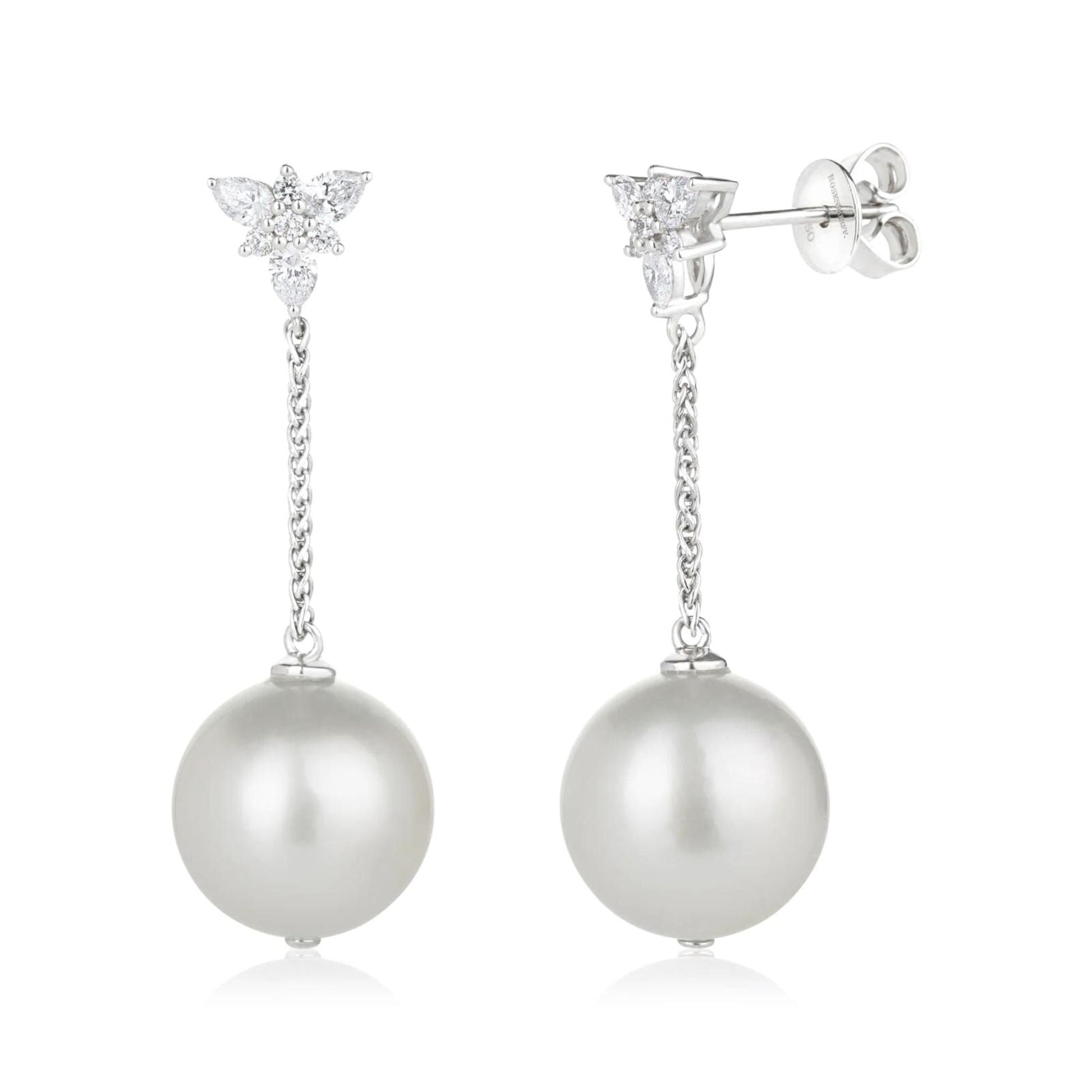 South Sea 12mm Pearl & Diamond Drop Earrings