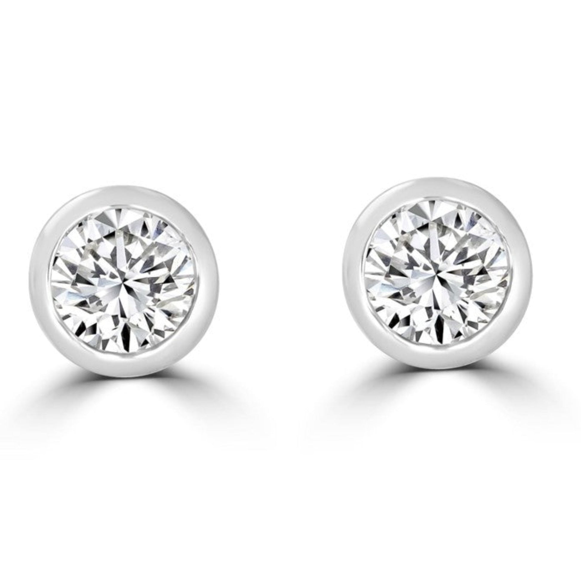 The Timeless 0.40ct Bezel earrings feature two sparkling diamonds set in a sleek bezel setting, enhancing its natural beauty and showcasing its radiance.